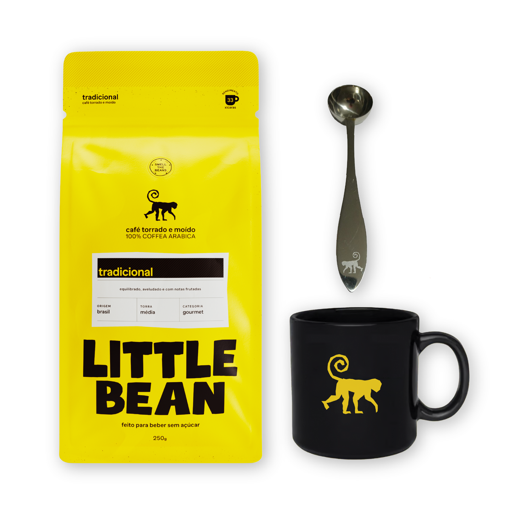 criamos para sua primeira compra um kit com 20% de desconto para começar com 1 Little Bean Tradicional (nosso café puro e com sabor naturalmente doce), + 1 colher medidora de aço inox + 1 caneca do Little Bean por R$124,90.